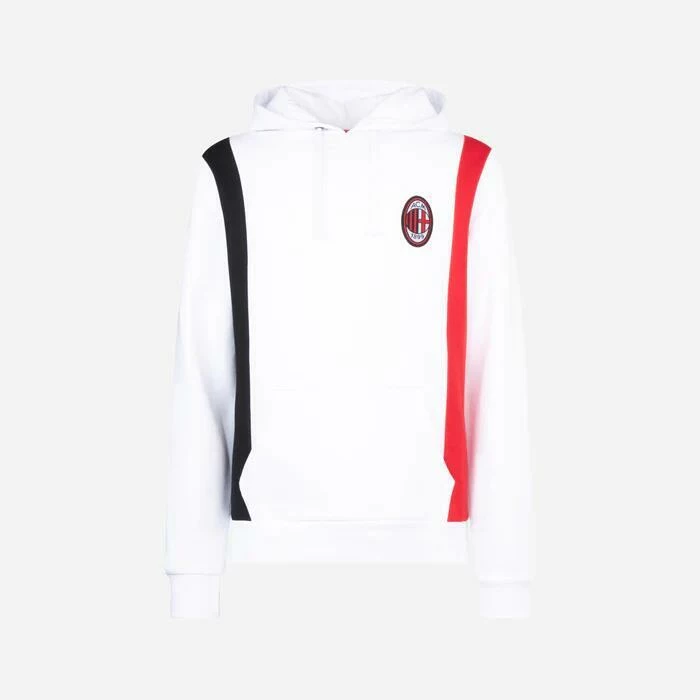 Stijlvol, sportief en herkenbaar. Laat je liefde voor I Rossoneri zien met deze AC Milan hoodie voor volwassenen! Deze hoodie is gemaakt van 30% polyester en 70% katoen. Ideaal voor tijdens het sporten of als casual kledingstuk. De trui is wit van kleur en bevat de herkenbare zwart-rode AC Milan kleuren. Op de borst vind je het officiële AC Milan logo.