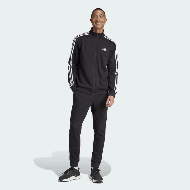 Dit trainingspak houdt je comfortabel in de klassieke adidas stijl, of je nu ontspant of e-mails beantwoordt. Het ritsjack en de broek van fleece met katoen voelen behaaglijk en warm aan. Het ingetogen design past moeiteloos bij een wandeling in het park of een uitje met vrienden. Minimaal 70% van dit product bestaat uit een mix van gerecyclede en hernieuwbare materialen.