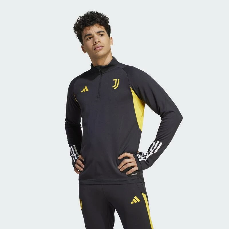 Een Juventus voetbalshirt om warm te blijven tijdens de training, gemaakt met gerecycled materiaal.