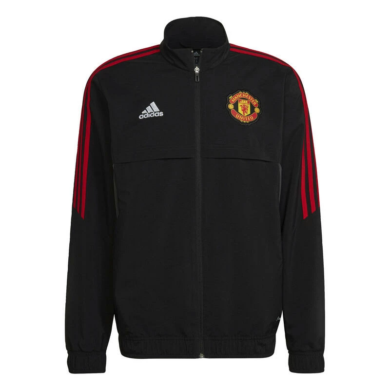 Het gaat niet alleen om hoe je het spel speelt. Het gaat ook om hoe je jezelf presenteert. Dit adidas voetbaljack laat met een geborduurde badge op de borst zien dat je Manchester United trouw bent. Vochtafvoerend AEROREADY houdt je zelfverzekerd, wat de dag ook voor je in petto heeft.Dit met 100% gerecyclede materialen gemaakte product vertegenwoordigt slechts één van onze oplossingen om plastic afval te verminderen.