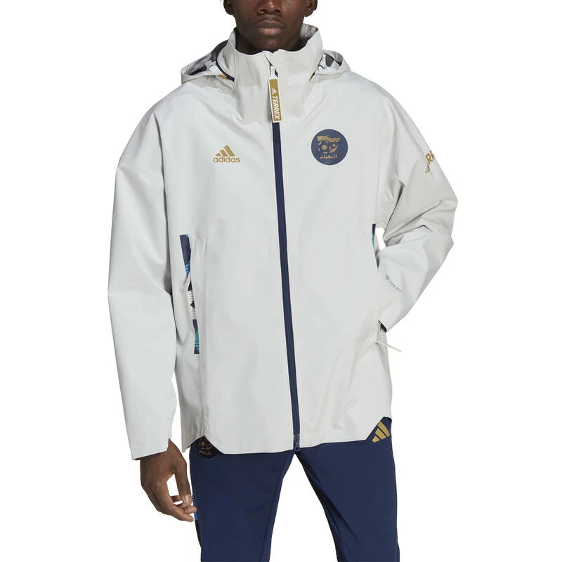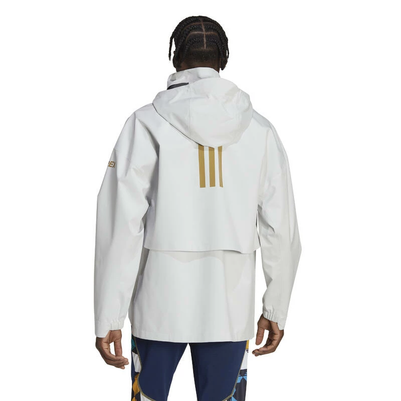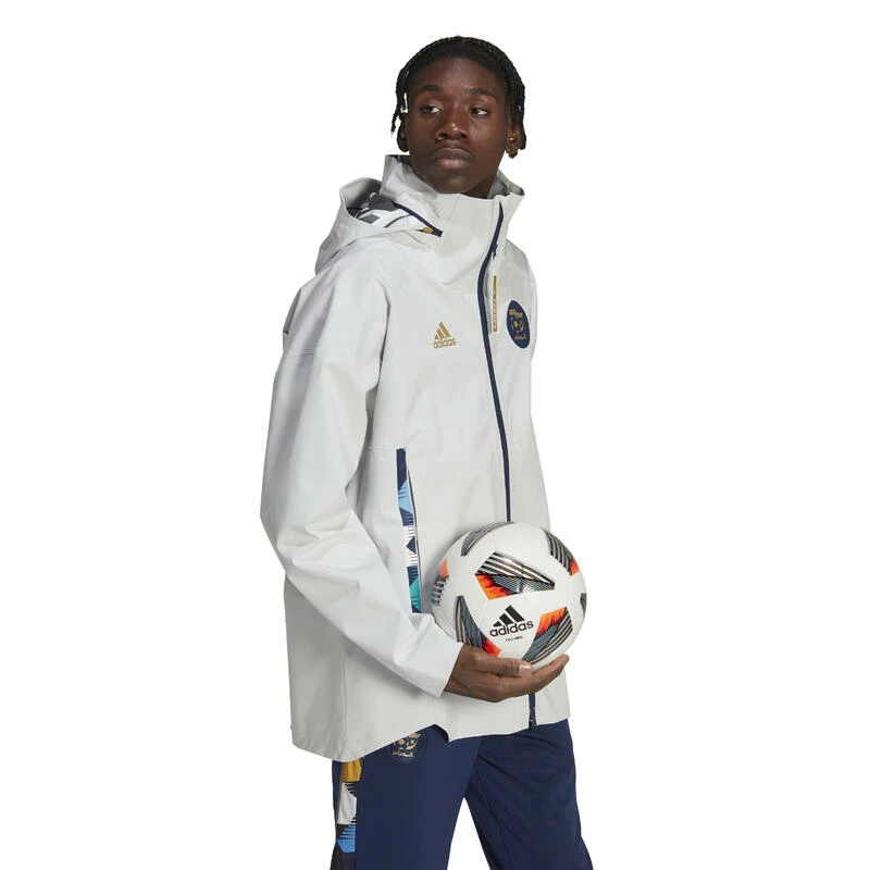 JuichAlgérie aan, ongeacht het weer. Met dit adidas jack blijf je comfortabel terwijl je je liefde voor je favoriete voetbalclub laat zien. Dankzij de afneembare riemen aan de binnenkant van het jack kun je het onderweg naar het stadion of onderweg dragen. RAIN.RDY houdt je droog als het regent, of je nu juicht vanaf de tribune of gewoon je gang gaat.Gemaakt van gerecycled materiaal afkomstig van productieafval, zoals snijafval, en huishoudelijk afval na consumptie om de grotere milieueffecten van de productie van nieuw materiaal te vermijden.