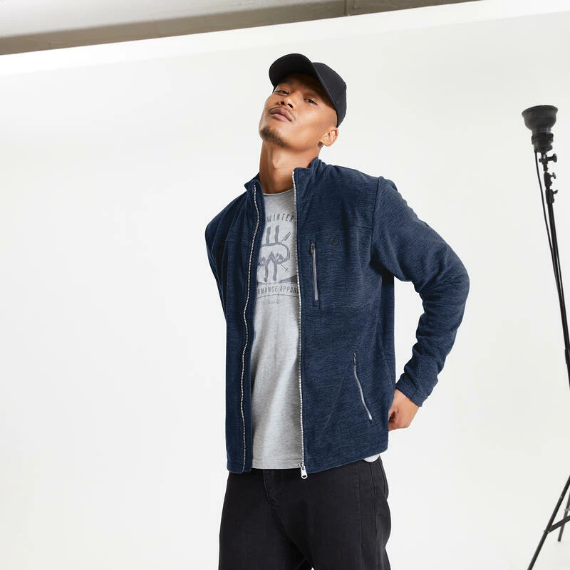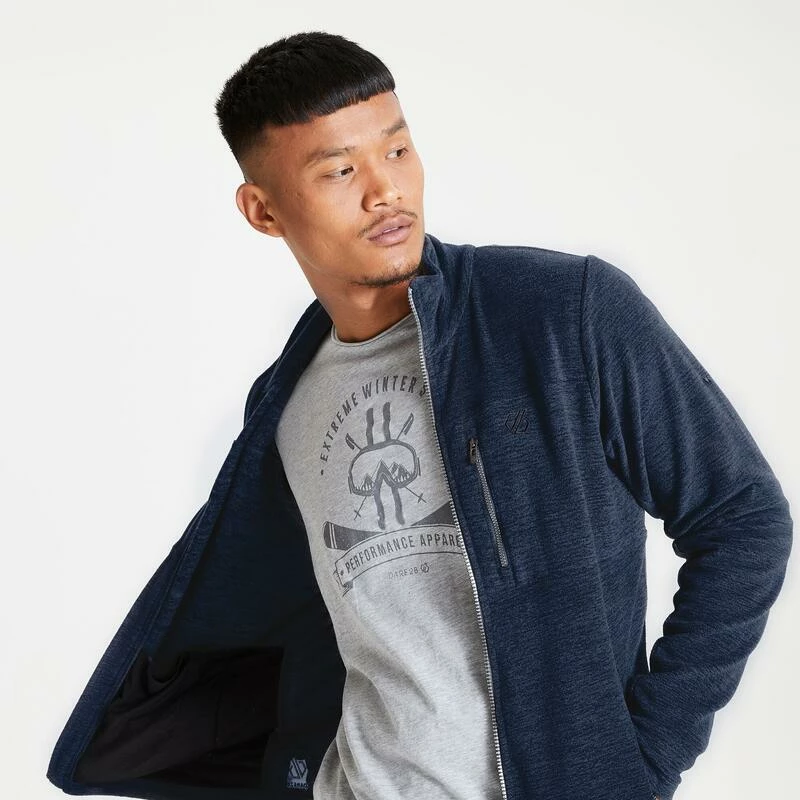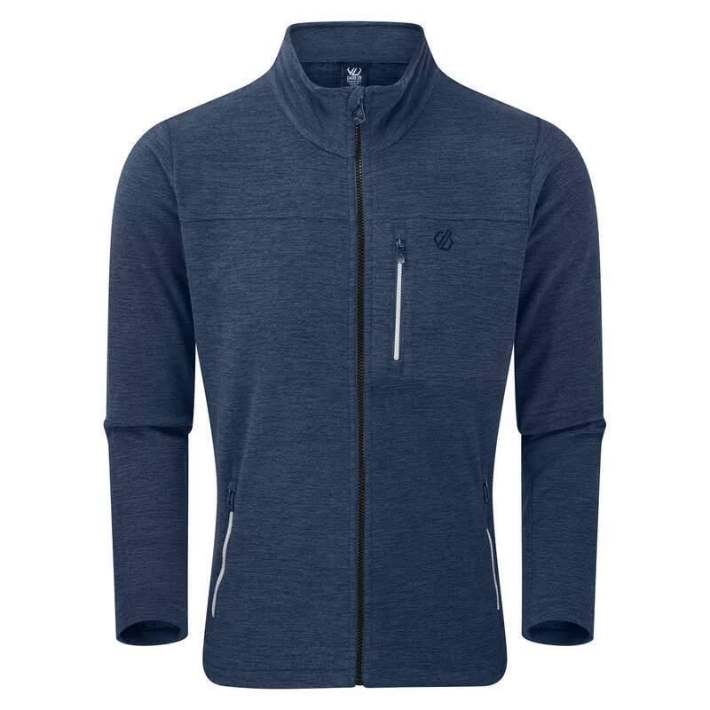 De Dare 2b Foretold Fleece voor heren – jas van gemêleerd fleece met een comfortabele rechtopstaande kraag. Sluiting over volle lengte met ritsbescherming aan de binnenkant voor comfortabele bewegingsvrijheid. Rekbare band bij de manchetten en zoom. Lage zakken met rits.