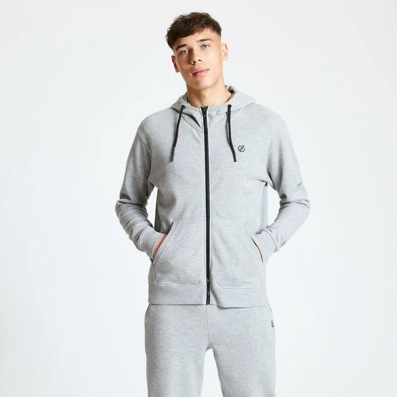 De Modulus hoody van Dare 2b. Een sweater met hele rits gemaakt van geborstelde jerseystof met katoen. Lichte structuur en zacht om te dragen. Voor rekoefeningen, of om de stad in te fietsen of te loungen in het park.
