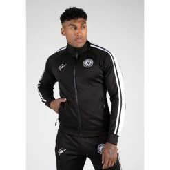 Met de Gorilla Wear Stratford Trainingsjas zijn alle ogen op jou gericht. Perfect om te dragen tijdens workouts dankzij de stretchy stoffen die zorgen voor bewegingsvrijheid. Maar zeker ook geschikt om buiten de sportschool te dragen, want het ziet er cool uit en voelt heerlijk aan. De trainingsjas heeft een slim fit en is gemaakt van een mix van polyester en elastaan. Voorzien van een rits met kinbescherming en voorzakken met rits om je spullen veilig op te bergen. Het is afgewerkt met een geborduurd embleem en gezeefdrukte belettering. Wat nog beter is, is dat deze trainingsjas verkrijgbaar is in twee verschillende kleuren en deel uitmaakt van de Stratford set. De set bestaat uit bijpassende T-shirts, broeken en shorts. Maak de hele set compleet en steel de show