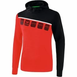 Comfortabele katoenen compensatieruimte. Zacht aanvoelend functioneel materiaal Katoenaanraking voor een comfortabel gevoel Hoge kraag met geïntegreerde capuchon en koord Geribbelde mouwen en zoom Geïntegreerde kangoeroezak Stijlvolle 5-C-print in 3D-look Kinderversie zonder snoer
