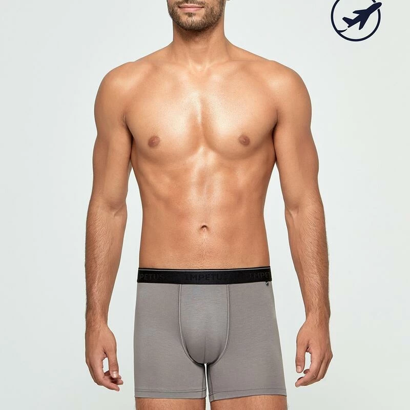De taupe grijze Travel boxer voor mannen van Impetus is speciaal ontwikkeld voor mannen die reizen. Bekend om zijn uitzonderlijke comfort dankzij de natuurlijke vezel lyocell, absorberen deze boxershorts met hun minimalistische en elegante ontwerp beter vocht dan katoen, zijn zachter dan zijde en zijn bij overmatige hitte koeler dan linnen.[Als Europees merk garandeert de fabrikant, Impetus Travel een product van hoge kwaliteit met een lange levensduur en een zorgvuldige afwerking.