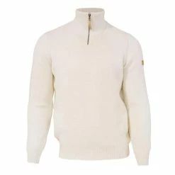 De Ivanhoe NLS Elm Natural white half zip – 100% zuivere ongeverfde wol is een wollen trui uit het NLS (New level of Sustainability) duurzaamheids programma van Ivanhoe. Een trui met een halve ritssluiting en een robuuste, ribgebreide kraag. Op de linkerbovenarm is een logobadge gemaakt. De trui is gemaakt van 100% zuivere ongeverfde wol.
