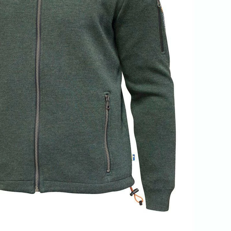 De rib gebreide manchetten aan de onderzijde van de armen maken de Assar helemaal af. Voorzien van een omgekeerde rits aan de voorkant en in de zijzakken. Aan de onderzijde van het wollen vest is een trekkoord geplaatst voor een eenvoudige aanpassing van de pasvorm.