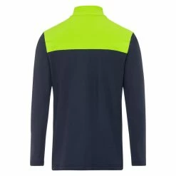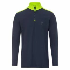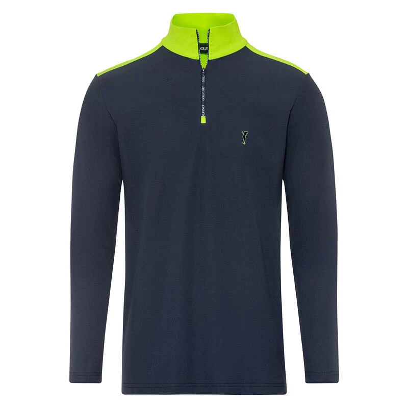 Deze herentrui met lange mouwen heeft een recht model en een zachte fleece voering, wat een hoog speelcomfort garandeert. Het ingenieuze stretchmateriaal voert het vocht dat tijdens de fysieke inspanning ontstaat snel en gericht weg van de huid. Zo kunt u zich concentreren op uw golfspel. Het bijna eenkleurige ontwerp wordt stilistisch verlevendigd door kleurrijke accenten op de kraag en schouders. De gedrukte GOLFINO streep op de ritssluiting zorgt voor een stijlvolle touch, net als het discrete logo dat op de linkerborst is geborduurd. Je zult altijd een goede indruk maken op het veld. Het kledingstuk is in de EU geproduceerd. Zo garanderen we dat de kledingstukken onder eerlijke omstandigheden worden vervaardigd en verkleinen we de ecologische voetafdruk door kortere transportroutes.Geborduurd logo op de borstHoge kraagContrasterende kleurkraagMet ritssluitingMateriaal dat vocht van het lichaam afvoertContrasterende inzetstukkenSuperzacht van binnen