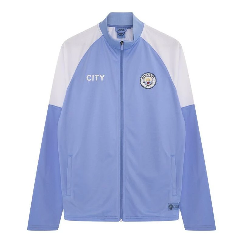 Toon je steun voor The Citizens met dit Manchester City trainingspak voor volwassenen. Het trainingspak bestaat uit de herkenbare wit-blauwe kleuren en het officiële logo.