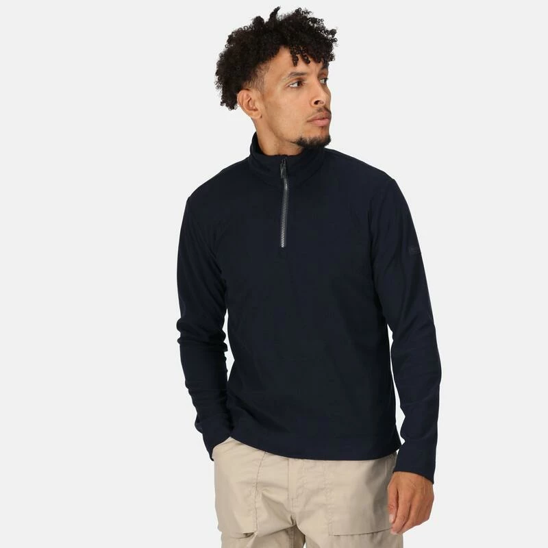 Voor heren die willen wandelen. Deze fleece met halve rits is gerecycled.