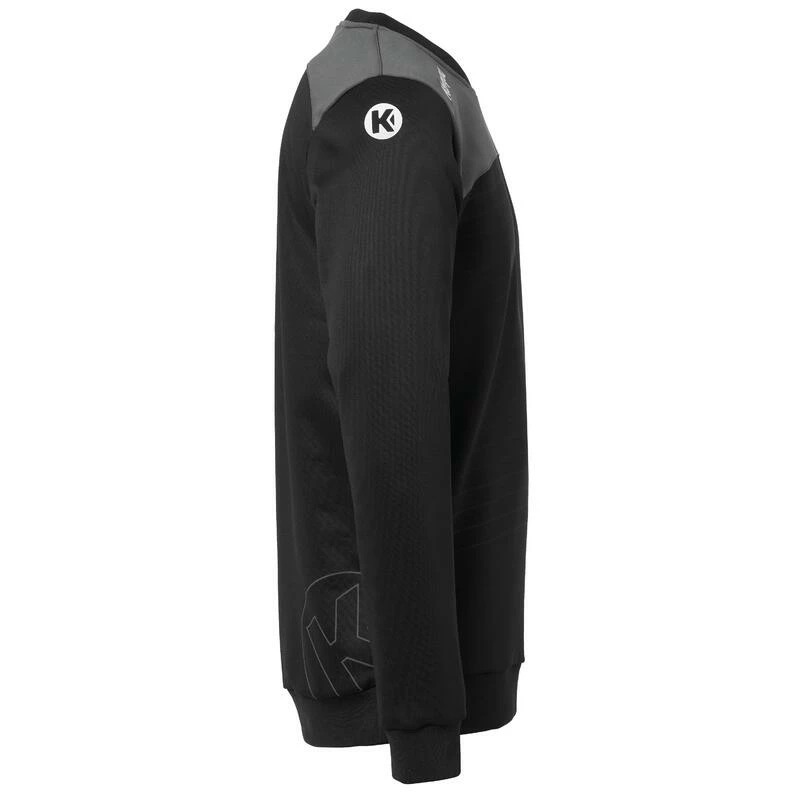 Ronde hals jersey met nekband – gesneden en genaaid ontwerp op de voor- en achterkant – reliëfafwerking op de voorkant – Elastische prints van Kempa- en K-logo’s – Elastische banden op de mouwen en het materiaal: 100% polyester