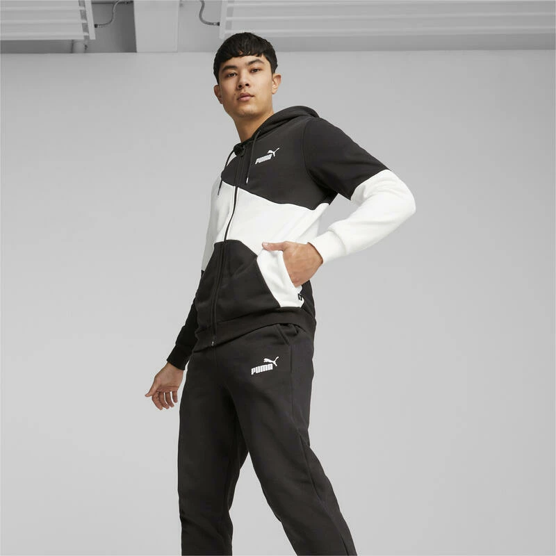 Geef je casual kleding een boost met een trainingspak van PUMA. Deze versie is ontworpen in een regular-fit van jersey met fleece voering en afgewerkt met opvallende kleurblokken.
