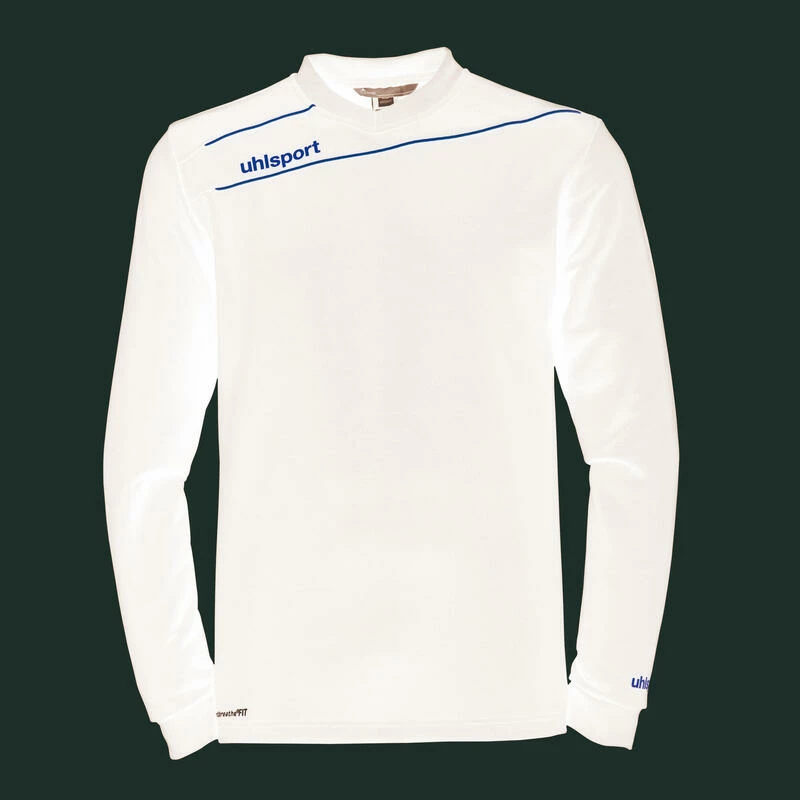 - griffe uhlsport imprimée sur la poitrine et sur la manche gauchen- sweat en poly terry avec col Vn- design deux pipingn- griffe uhlsport imprimée sur la poitrine et sur la manche gauchen- bas des manches en bord-côten